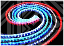 Равномерность свечения.На одном погонном метре дюралайта обычно размещается 36 шт (стандарт) миниатюрных ламп накаливания или светодиодов, расстояние между которыми составляет чуть менее 3 см. Таким образом, равномерного непрерывного свечения по всей поверхности шнура дюралайт получить не позволяет. Световой шнур с равномерным матовым свечением имеет большее число светодиодов на метр погонный, специальную светорассеивающую оболочку, стоит в несколько раз дороже и носит название «Гибкий неон» или «Холодный неон» (см. стр. №….).