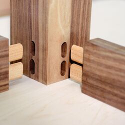 Особая форма шипа с расширяющимся пазом для удерживания клея и с боковыми продольными канавками обеспечивает надёжную фиксацию шипов. Для соединений с абсолютной защитой от проворачивания и максимальной прочностью. И это наряду с более быстрой обработкой: очень простое позиционирование первого паза с помощью упорных элементов и его фрезерование точно под размер. Заготовки фиксируются точно и заподлицо. При изготовлении последующих пазов с зазором система DOMINO даже допускает незначительные неточности.