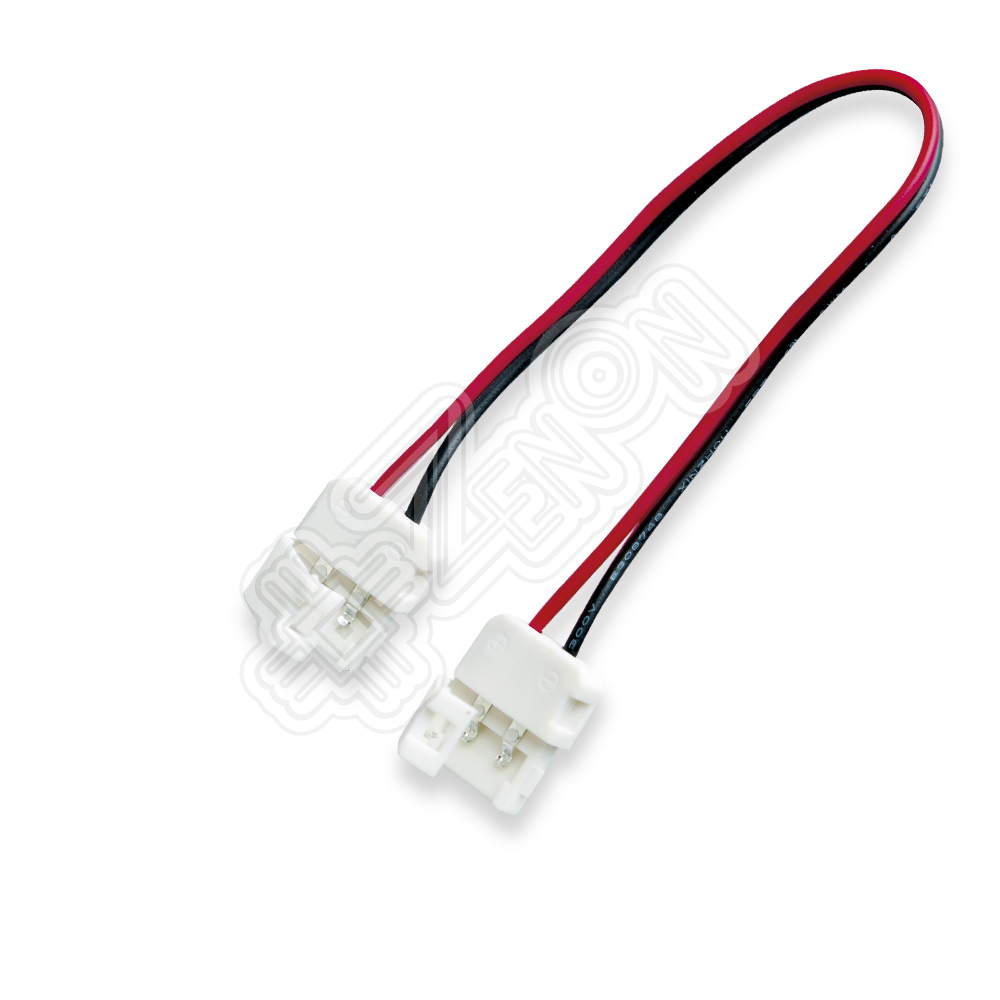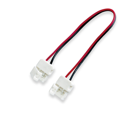 Коннектор 66662 "лента-лента" мягкий для 1-канальной (монохромной) LED ленты шириной 10 мм (совместим с лентами 8 мм). Позволяет соединять отрезки светодиодной ленты без пайки. Состоит из двух пластиковых колодок - с двумя контактами в каждой - и четырёх проводов, обозначенных цветами красный ("плюс") и чёрный ("минус").