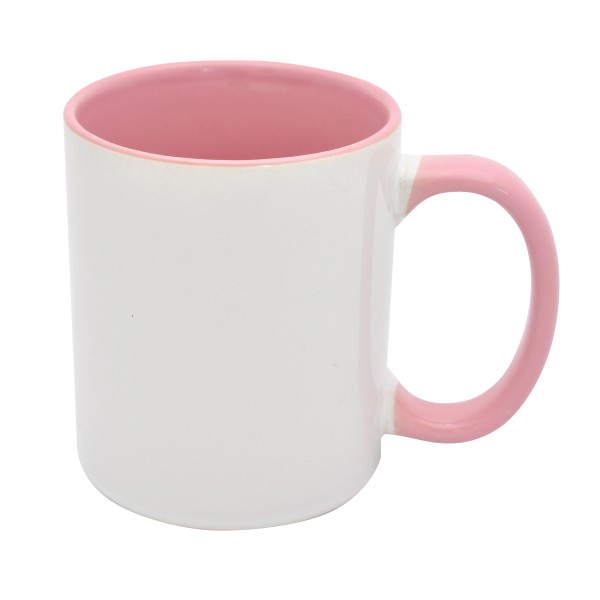 Керамические фото-кружки с полимерным покрытием, для сублимационной печати, белые, цветные внутри, цветная ручка
