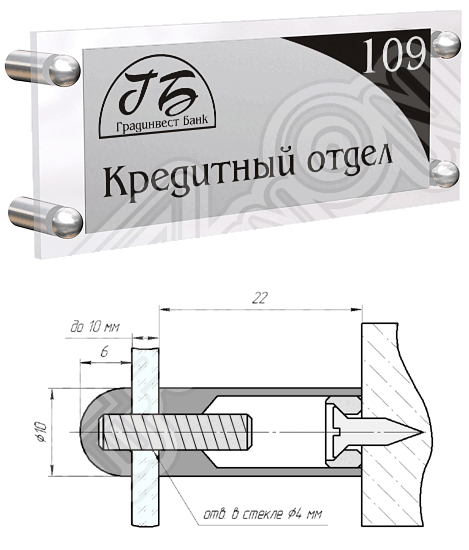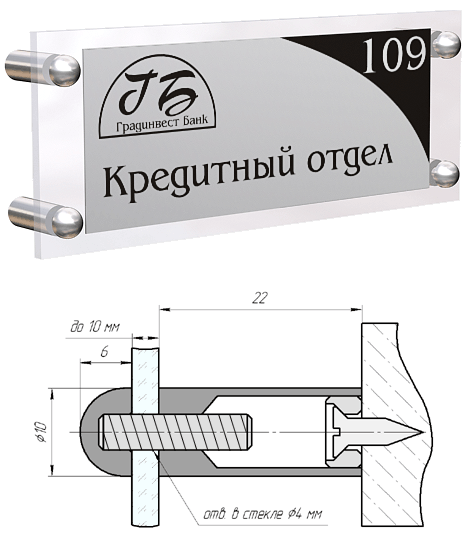 Дистанционный держатель металлический с полукруглым винтом SPHERE 10 х 22.