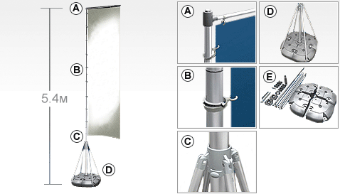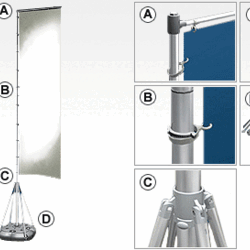Мобильный раздвижной флагшток JUST FLAG. Высота до 5 м. Материал - пластик, алюминий. Рекомендуется как для уличного, так и для интерьерного применения. Для устойчивости, основание заполняется водой или песком.