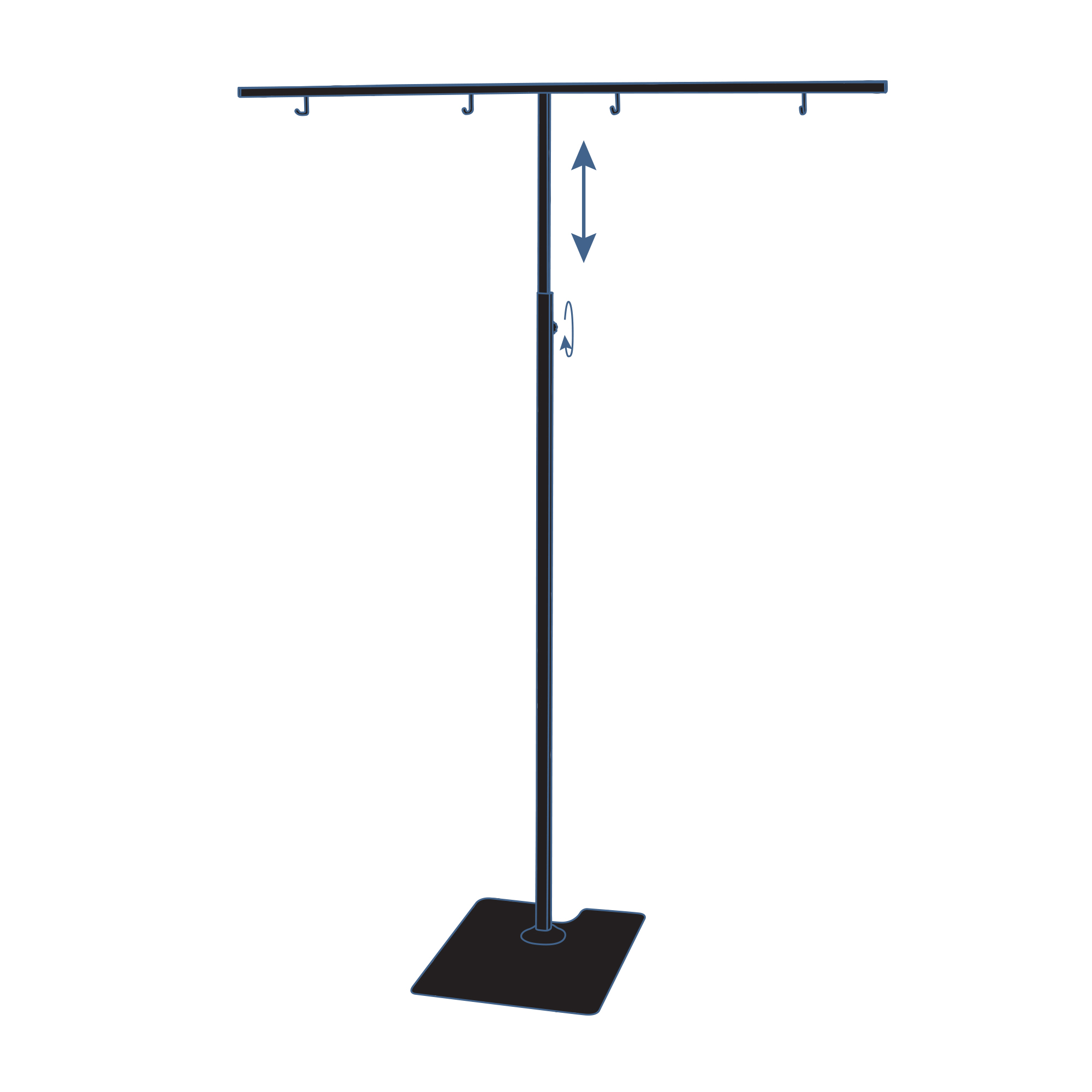 Телескопическая Т-образная стойка с металлическим основанием. Поставляется без рамки. Высота: 1000-1900 мм. Цвет: черный.