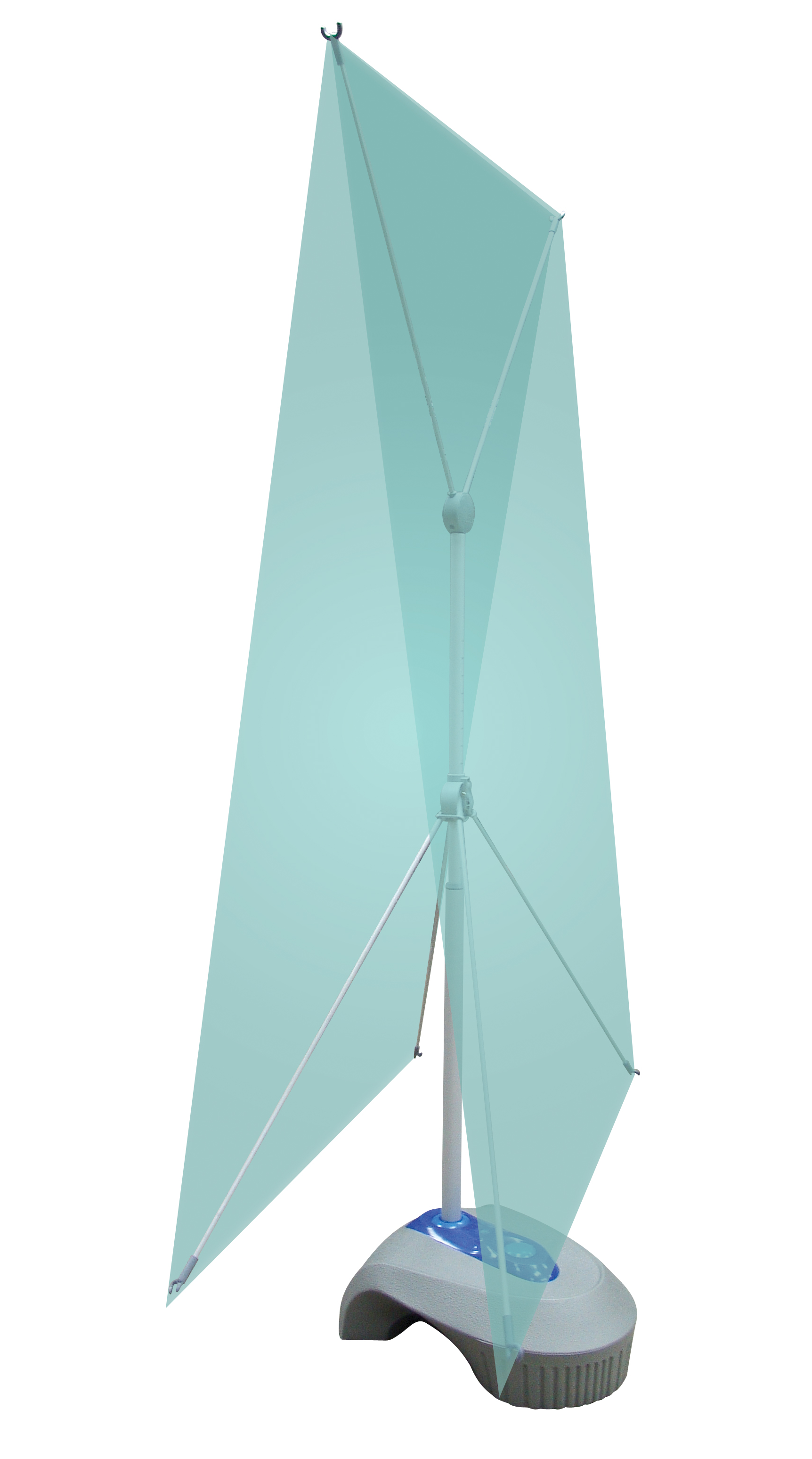 Двухсторонний баннерный стенд с возможностью уличного использования. Стенд снабжен оригинальным полым пластиковым основанием, с возможностью наполнения его водой, песком и т. д., для придания конструкции дополнительной устойчивости.