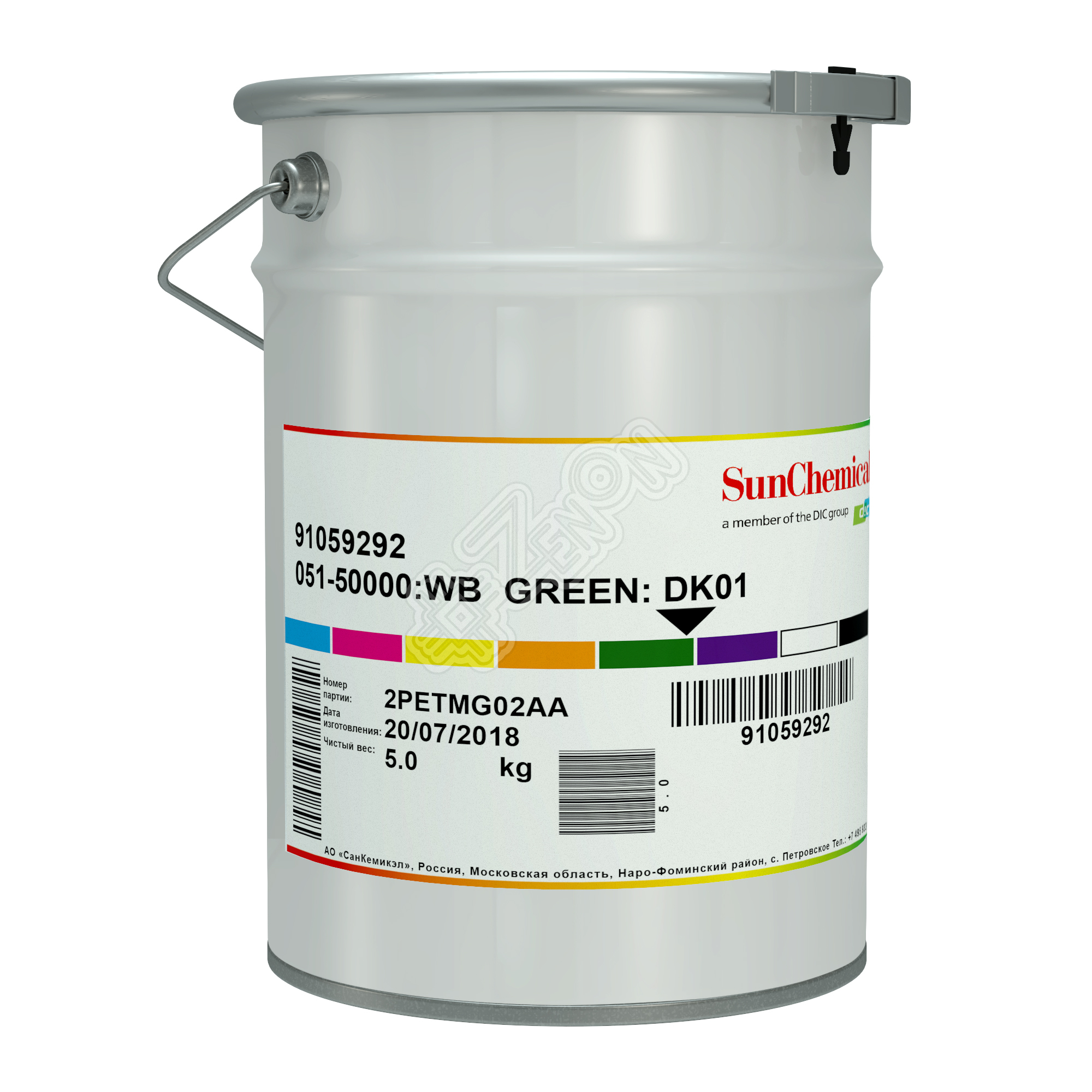 Краска трафаретная водная SUN CHEMICAL серия AQ-51, 051-50000 зелёная, 5 кг
