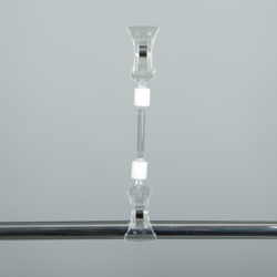 Держатель ценника DEPOST, регулируемый, предназначенный для размещения ценников и информационных материалов на краях корзин и упаковок. Цвет: прозрачный. Высота: 150 мм. Ширина прищепок: 22 мм.