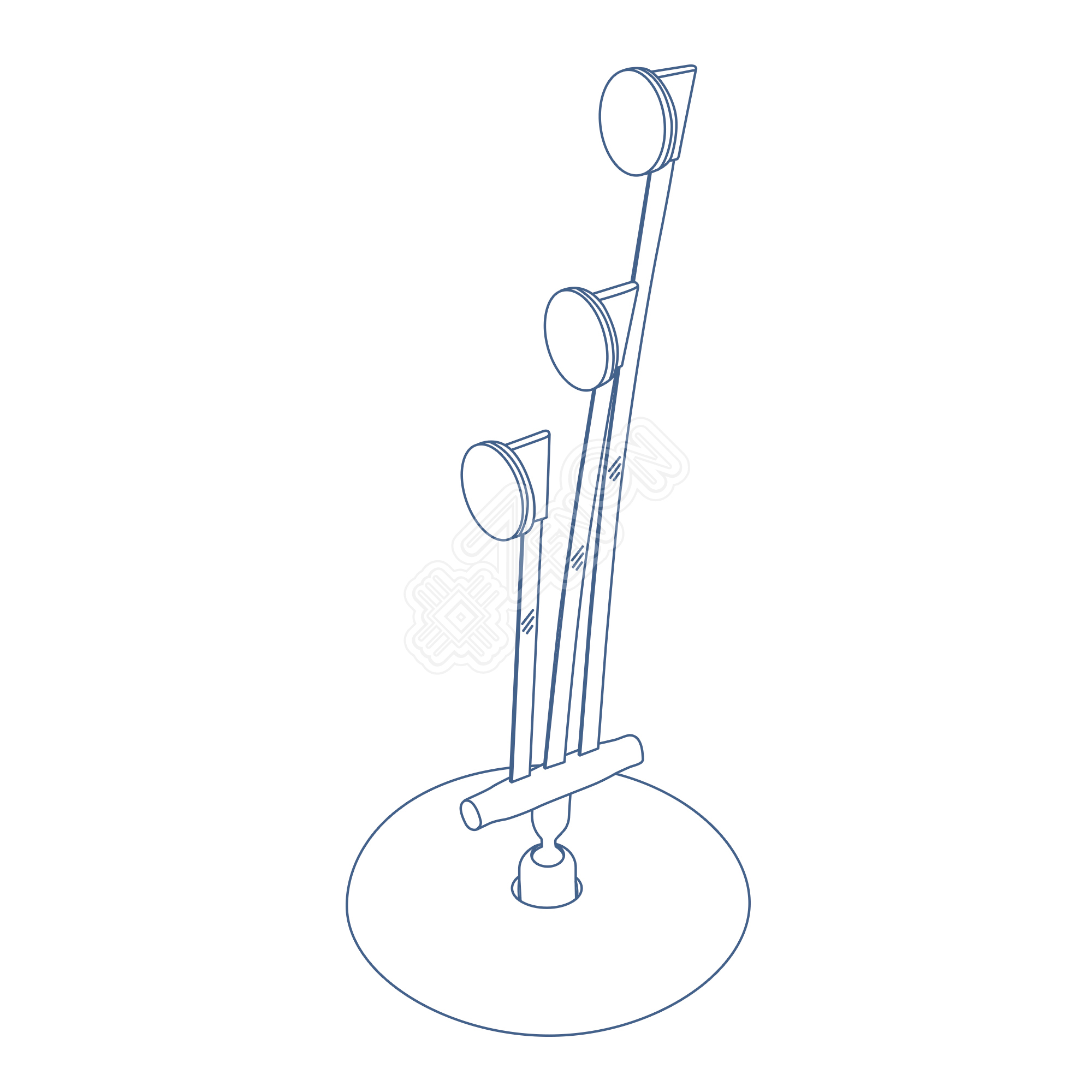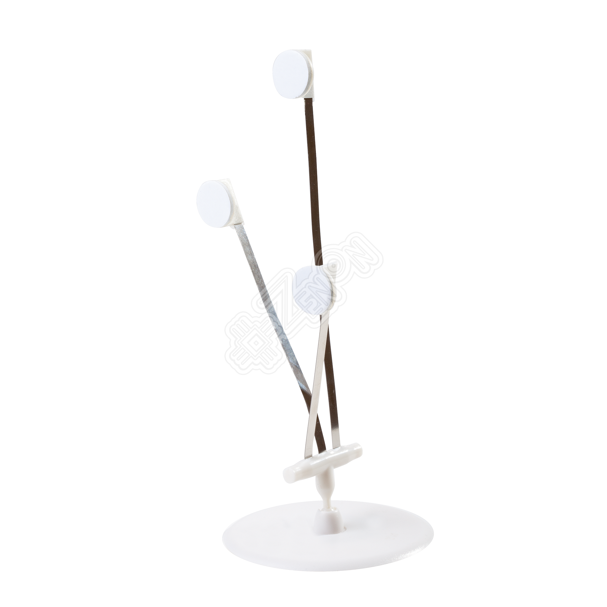 Шарнирный ценникодержатель для трех ценников на круглом основании, обеспечивающим повышенную устойчивость. Площадка для ценника и основание снабжены двухсторонним скотчем.