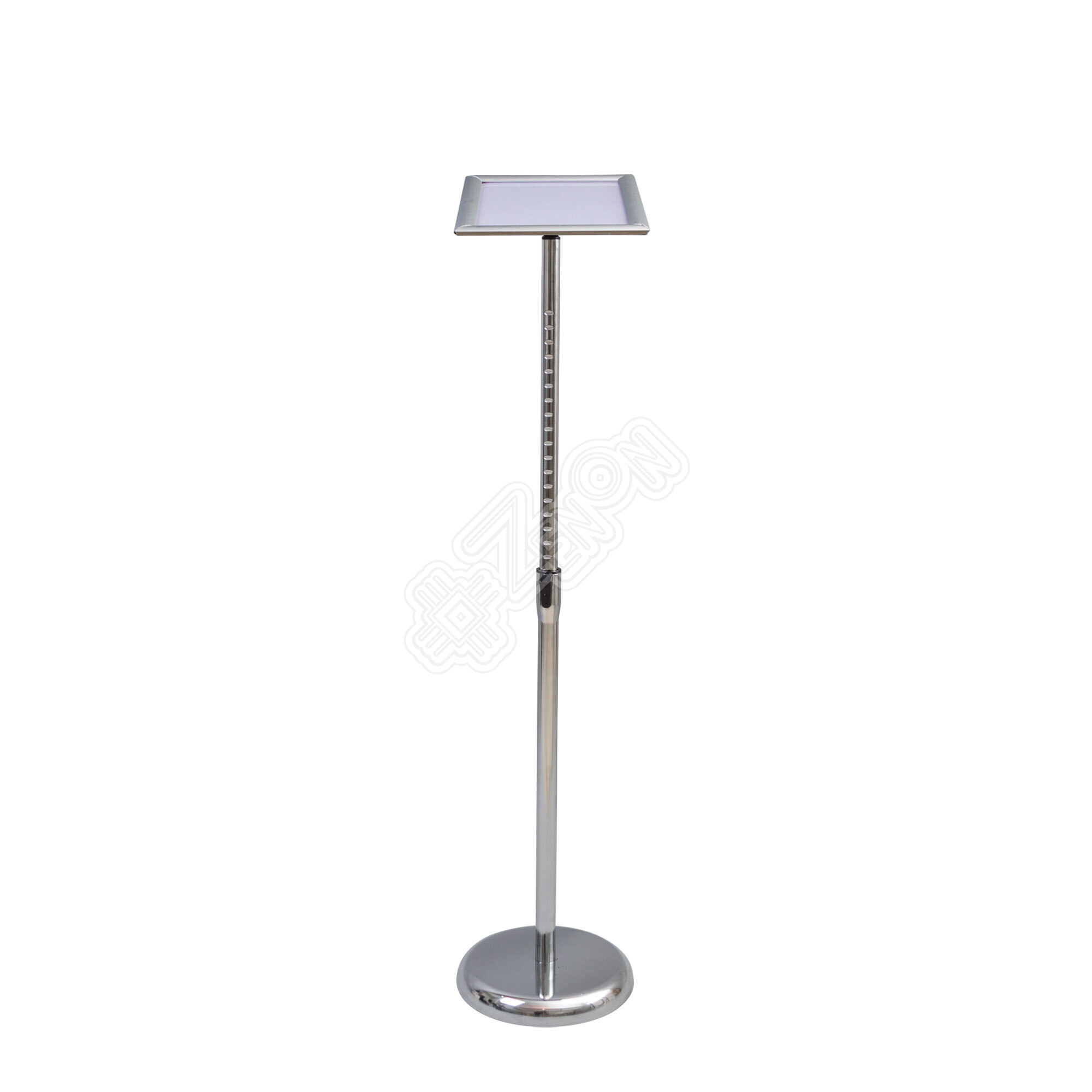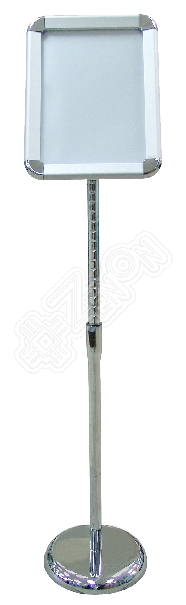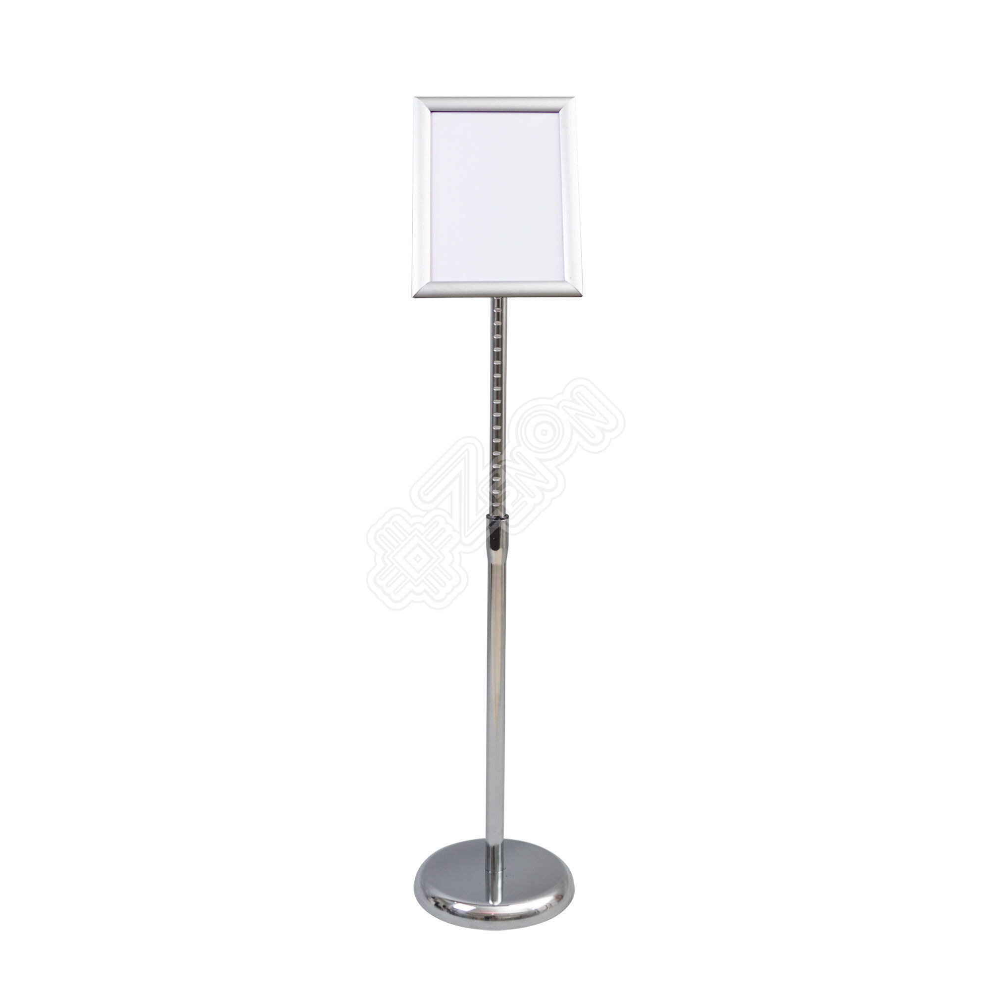 Телескопическая стойка с рамкой формата А4 из защелкивающегося профиля, что позволяет быстро менять информацию. В комплекте поставляется тонкий защитный пластик для рамки.
