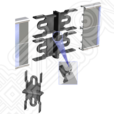 Элемент системы "ALU-MINI". Используется для соединения двух отрезков профилей и создания больших информационных модулей. Имеет возможность наращивания, в том числе и с заглушкой боковой.