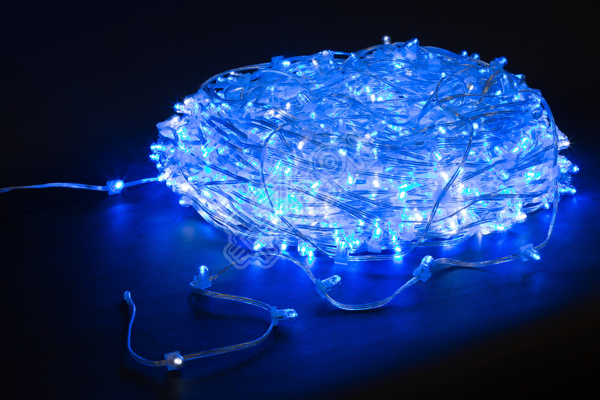 Основной провод. Обычно это провод на котором последовательно на расстоянии 15 или 30 мм расположены влагозащищенные лампы или светодиоды. Как правило, поставляется в бухтах по 100 м. Один конец провода подключается к источнику питания, другой нужно заизолировать.