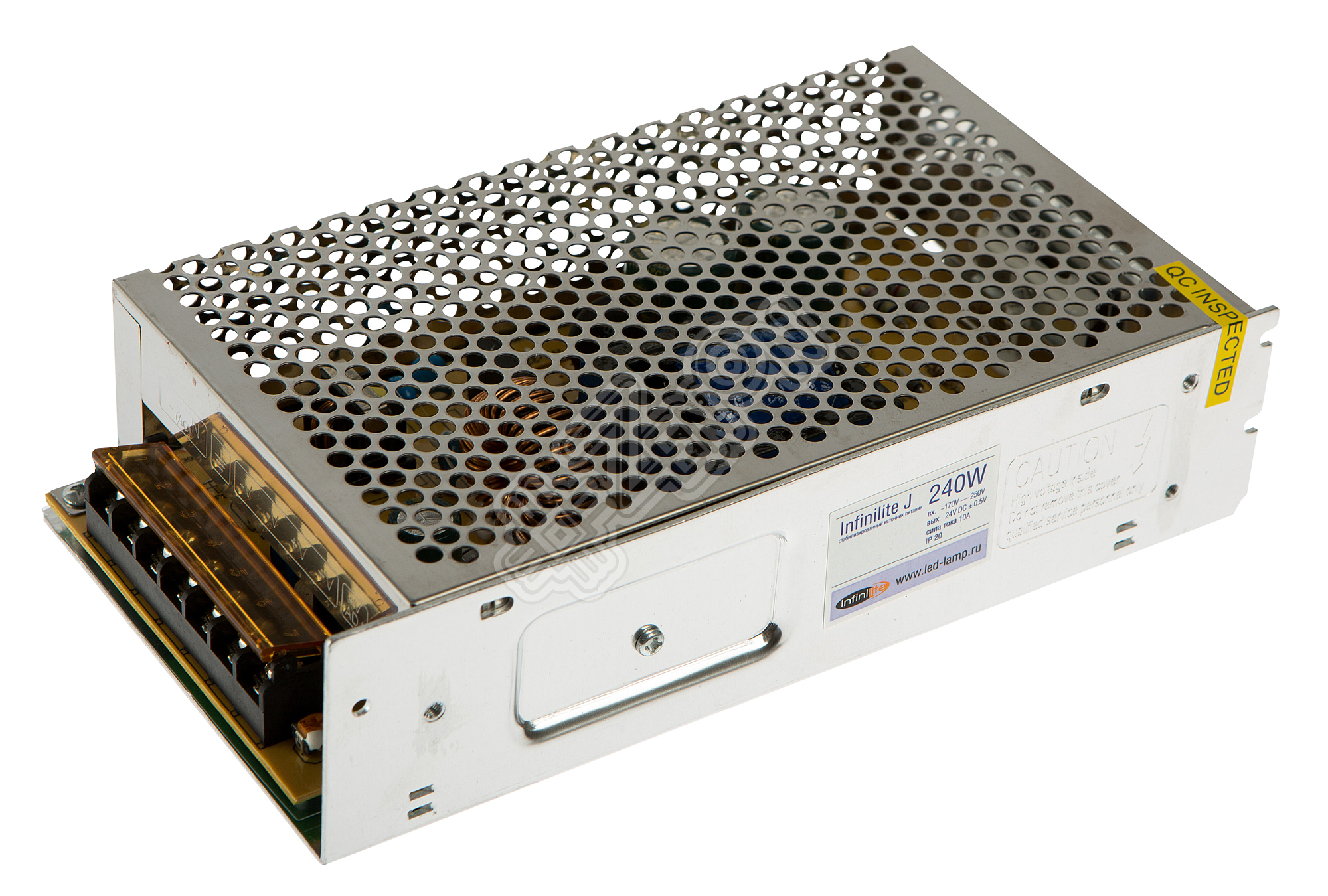 Источник постоянного напряжения 24 Вольт мощностью 240 Ватт в корпусе IP20. Предназначен для использования со светодиодными лентами, линейками, модулями, лампами и др. устройствами соответствующего напряжения.