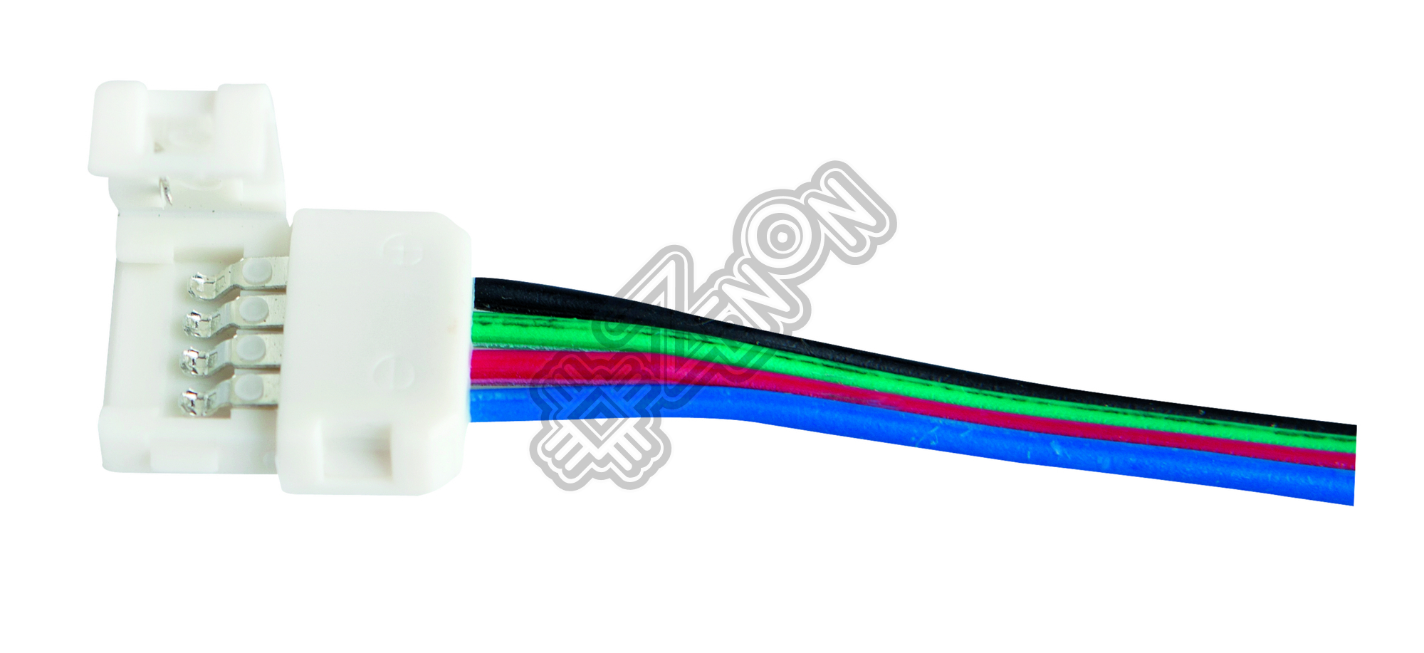 Коннектор 88883 "лента-питание" мягкий для 3-канальной (RGB) LED ленты шириной 10 мм. Позволяет подвести к светодиодной ленте питание/сигналы управления без пайки. Состоит из пластиковой колодки с четырьмя контактами и четырёх проводов, обозначенных цветами соответствующих каналов: чёрный ("общий"), красный, зелёный и синий.