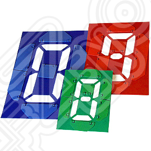 Принцип работы "сегмент - цифры" следующий. На световом коробе, затянутом цветной непрозрачной пленкой вырезаются семь стандартных сегментов цифры, образуя как бы световые окошки. Если все семь сегментов светятся (за счет подсветки изнутри) - образуется символ цифры "8", закрывая часть окошек-сегментов с помощью специальных пластмассовых шторок можно получать символы всех десяти цифр.