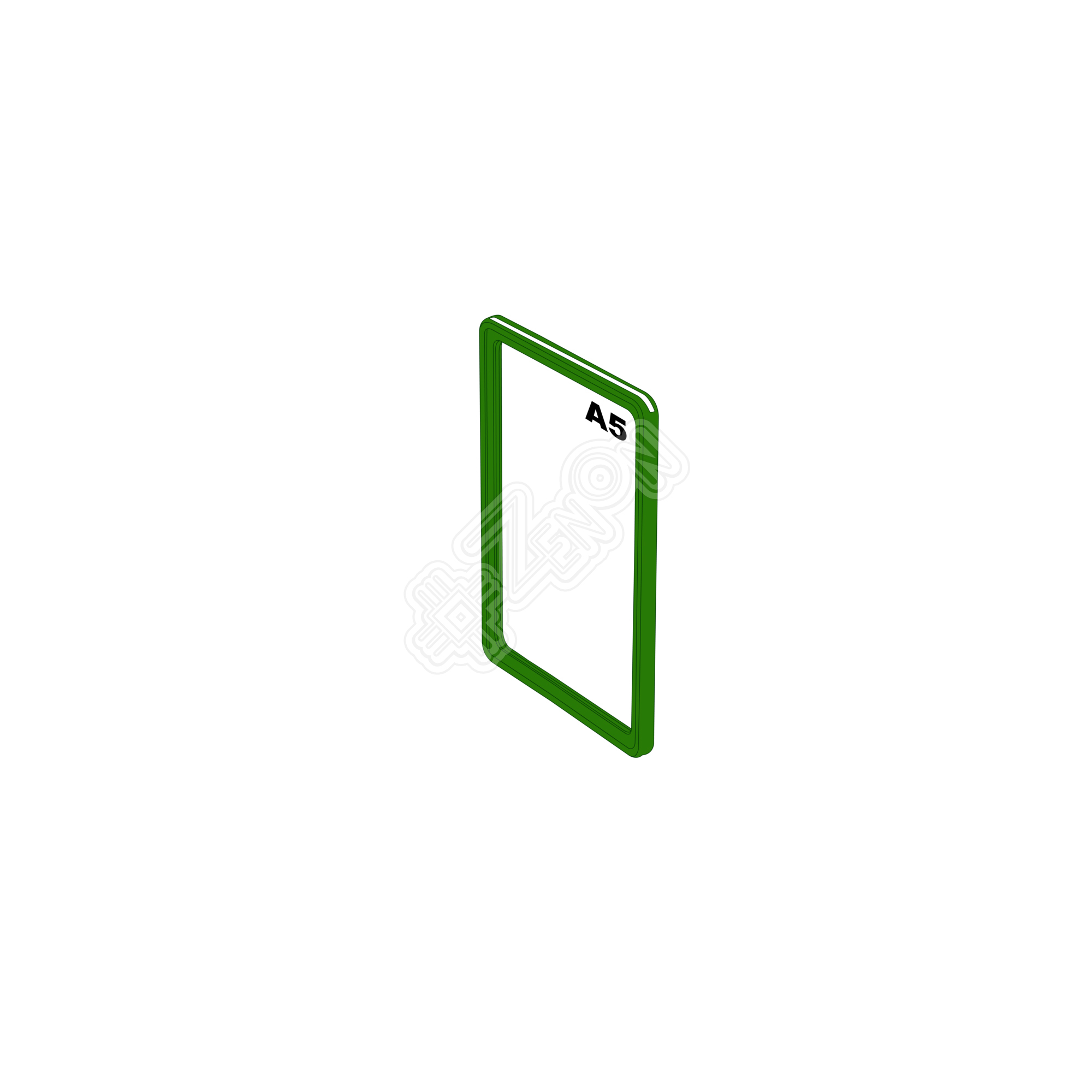 Пластиковая рамка, предназначенная для размещения информации на бумаге или другом сверхтонком носителе. Изготовлена из прочного АБС пластика. Обычно используется вместе с защитным прозрачным карманом. Формат: А5. Цвет: зелёный.