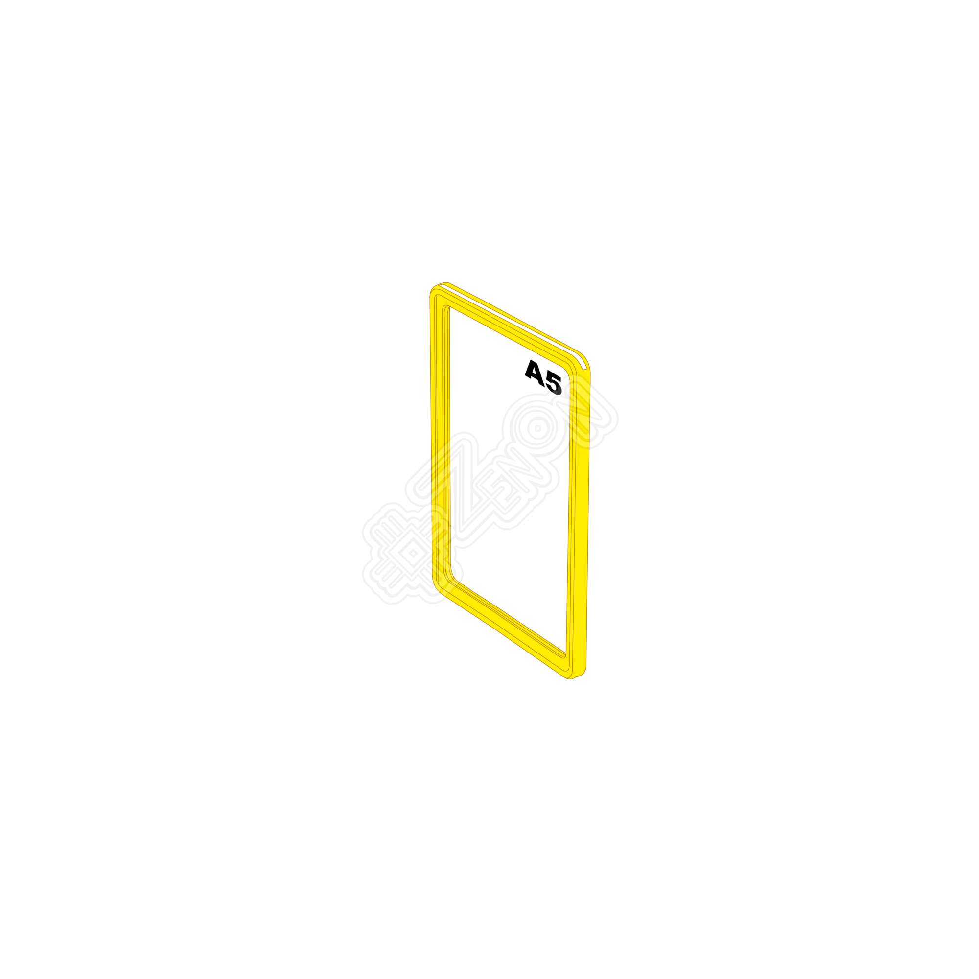 Пластиковая рамка, предназначенная для размещения информации на бумаге или другом сверхтонком носителе. Изготовлена из прочного АБС пластика. Обычно используется вместе с защитным прозрачным карманом. Формат: А5. Цвет: жёлтый.