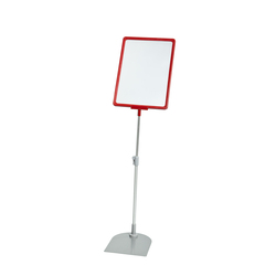 Телескопическая стойка с металлическим основанием. Материал трубки - алюминий. Поставляется в комплекте с рамкой формата А4 и пластиковым карманом. Высота: 640-1010 мм. Цвет: красный.