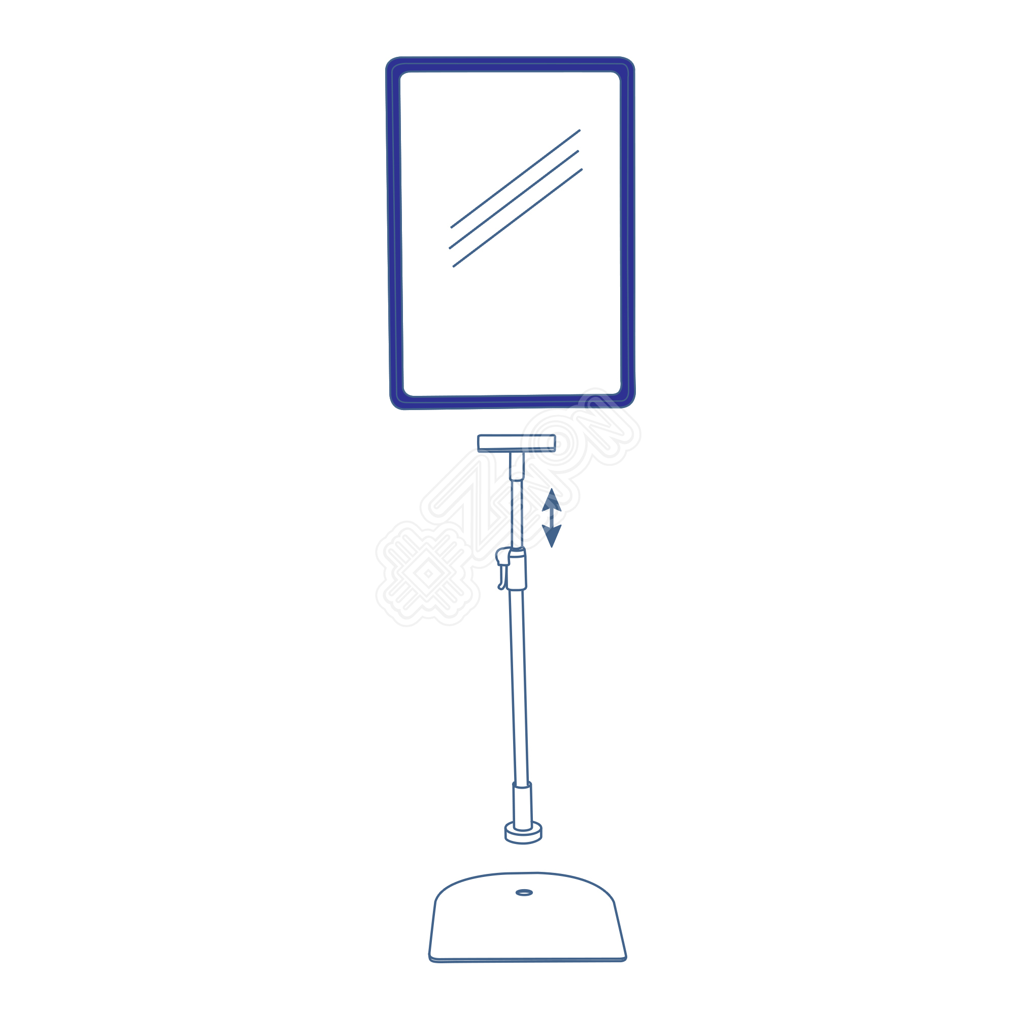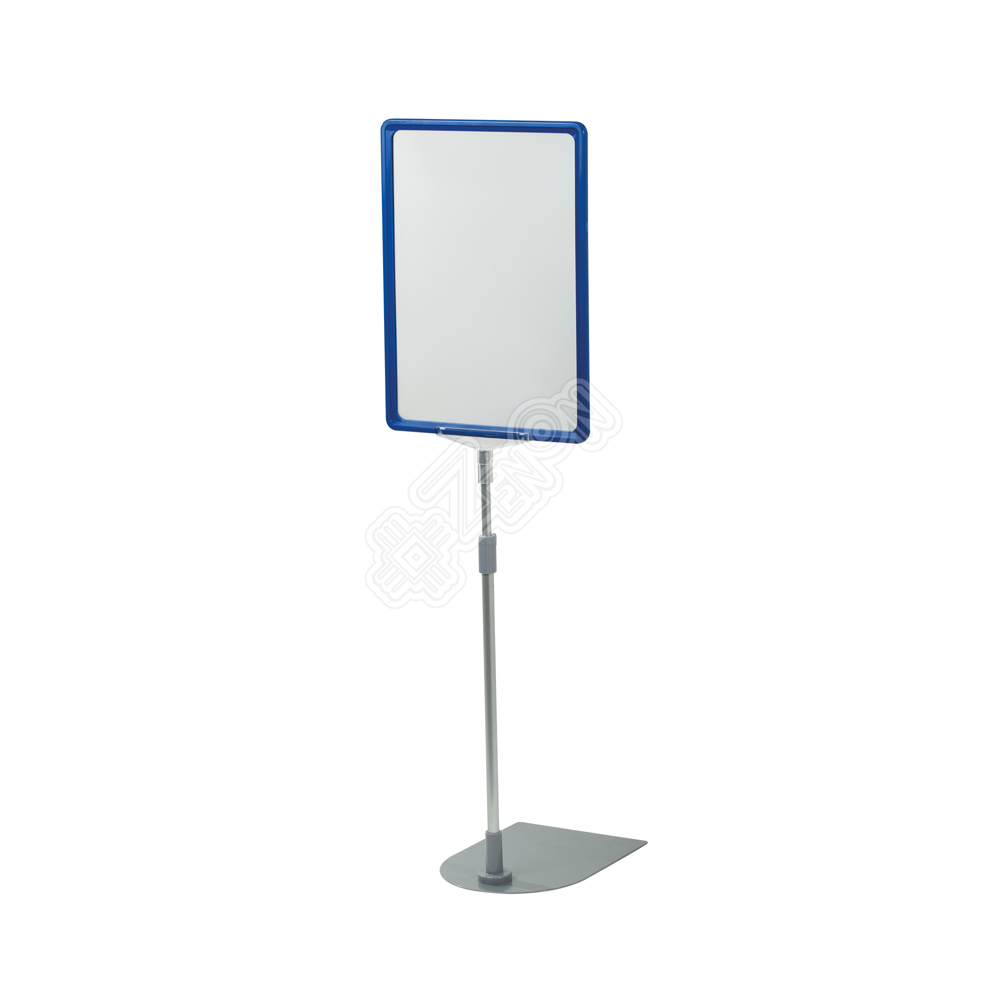 Телескопическая стойка с металлическим основанием. Материал трубки - алюминий. Поставляется в комплекте с рамкой формата А4 и пластиковым карманом. Высота: 900-1530 мм. Цвет: синий.