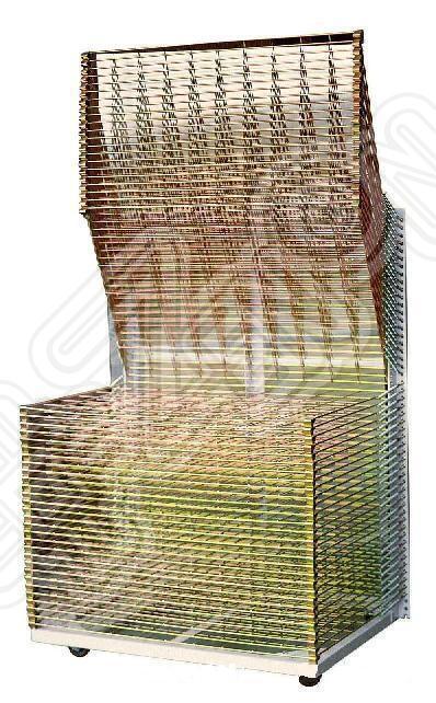 Простое сушильное устройство для трафаретных оттисков, с набором откидывающихся полок. Прочная и легкая рама установлена на колеса, что позволяет легко ее перемещать. Рама сушильного стеллажа снабжена 50 стальными откидными сетчатыми полками. Каждая полка фиксируется пружинами с двух сторон.