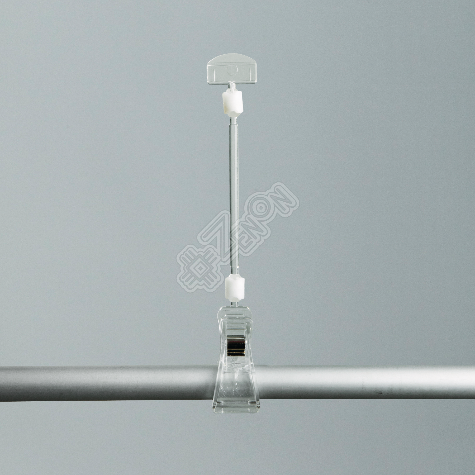 Держатель ценника DEPOST, регулируемый, предназначенный для размещения ценников и информационных материалов на трубе. Слайдер может поворачиваться относительно зажима с помощью шарнирного соединения. Цвет: прозрачный. Высота ценникодержателя: 195 мм. Ширина слайдера: 27 мм. Диаметр зажима: 32 мм.