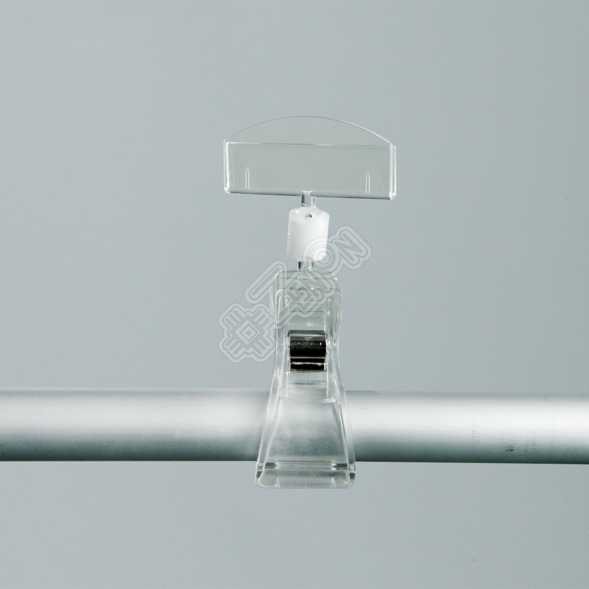 Держатель ценника DEPOST, регулируемый, предназначенный для размещения ценников и информационных материалов на трубе. Слайдер может поворачиваться относительно зажима с помощью шарнирного соединения. Цвет: прозрачный. Высота ценникодержателя: 100 мм. Ширина слайдера: 50 мм. Диаметр зажима: 32 мм.