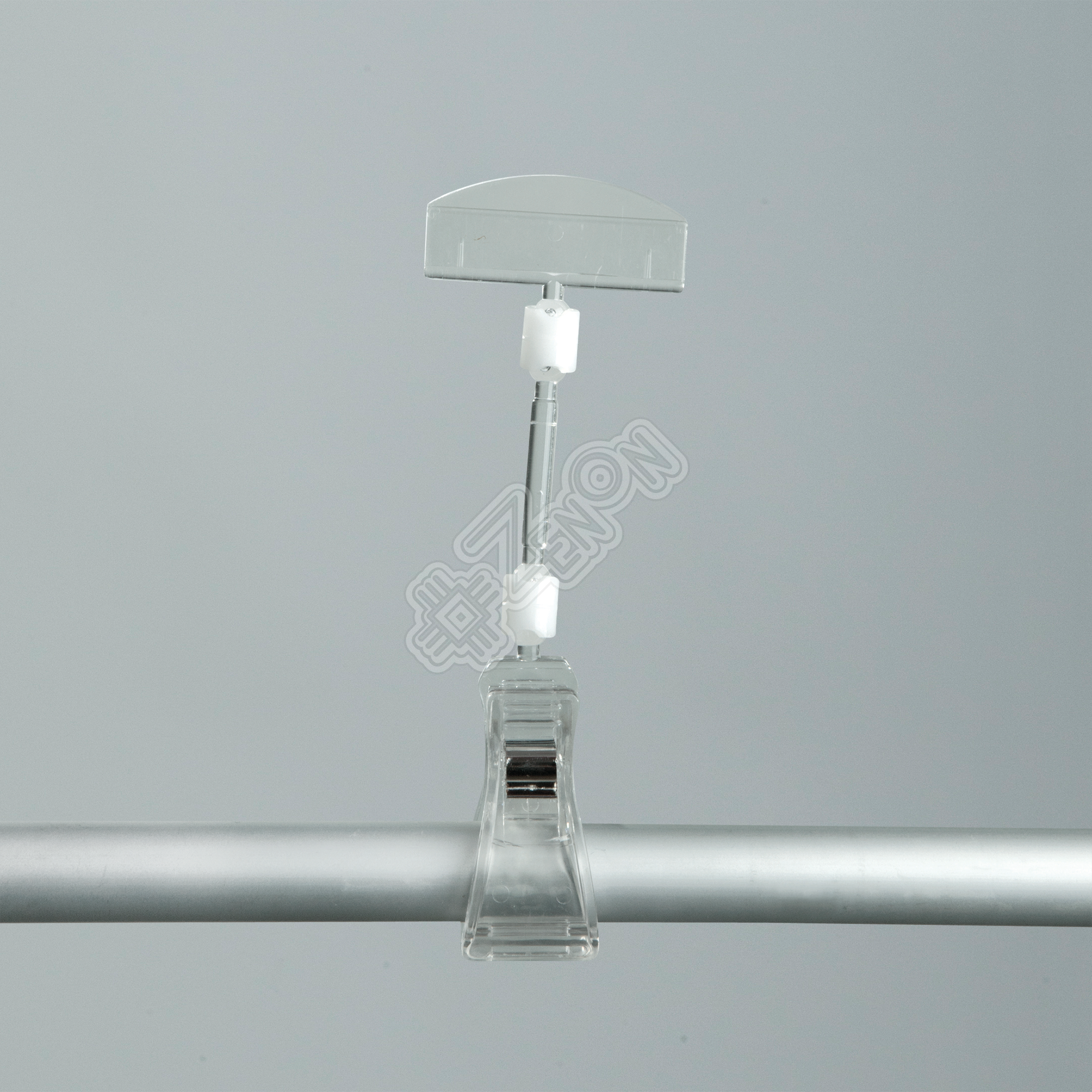 Держатель ценника DEPOST, регулируемый, предназначенный для размещения ценников и информационных материалов на трубе. Слайдер может поворачиваться относительно зажима с помощью шарнирного соединения. Цвет: прозрачный. Высота ценникодержателя: 150 мм. Ширина слайдера: 50 мм. Диаметр зажима: 32 мм.