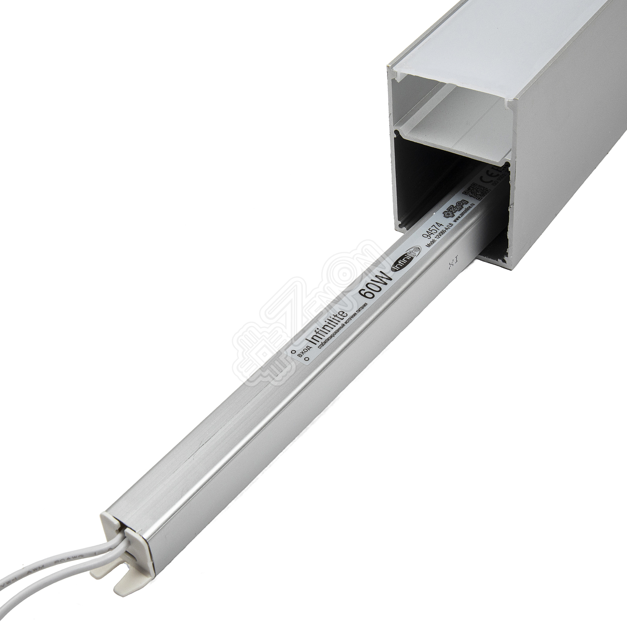 Блок питания Infinilite серии J/P, 60 Вт, 12 В, IP50, интерьерный, в металлическом корпусе, ток 5 A, для световых панелей