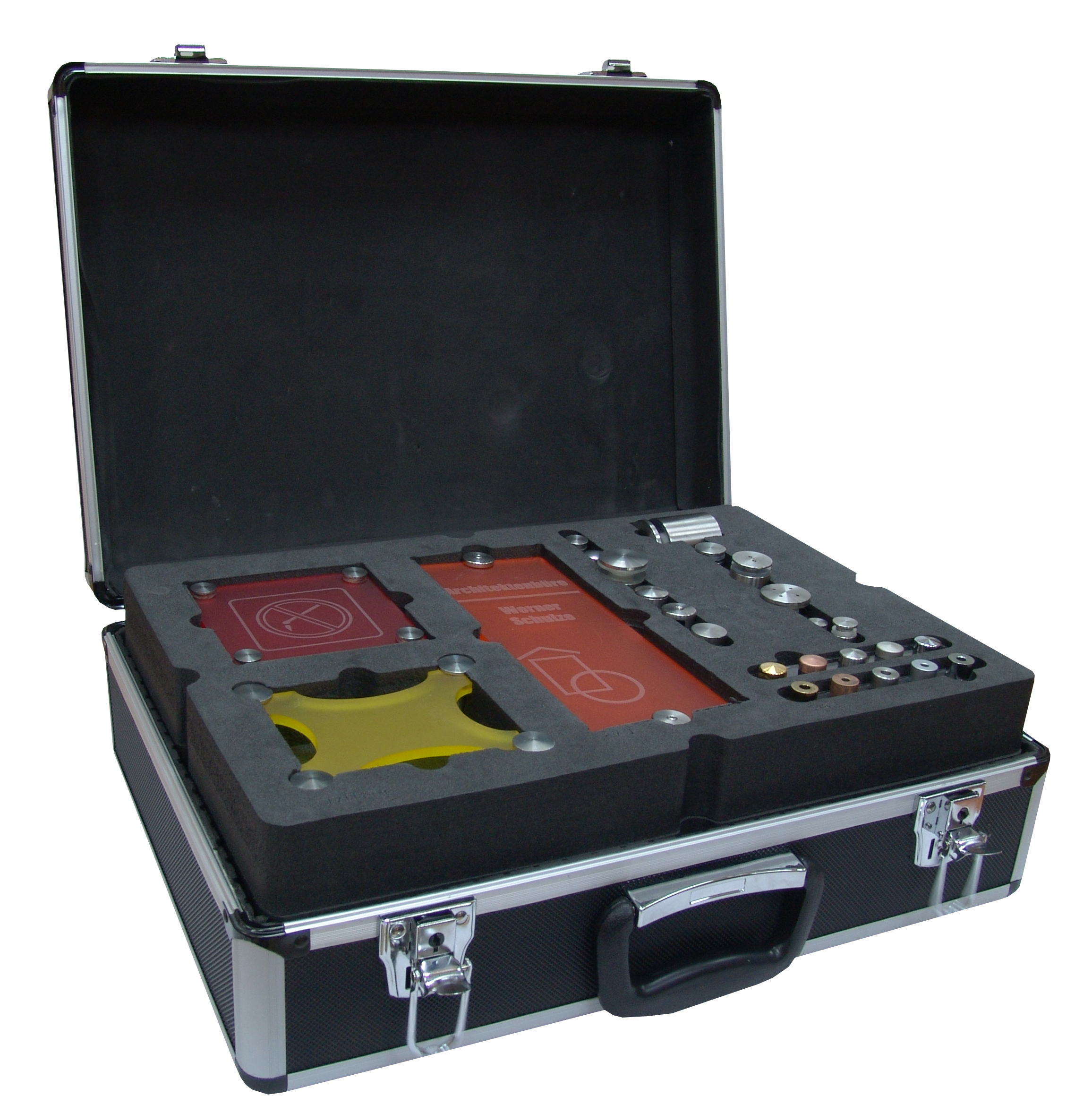 Чемодан с образцами дистанционных держателей и подвесных систем CitiNOX. В комплекте 3 небольших подстенда.