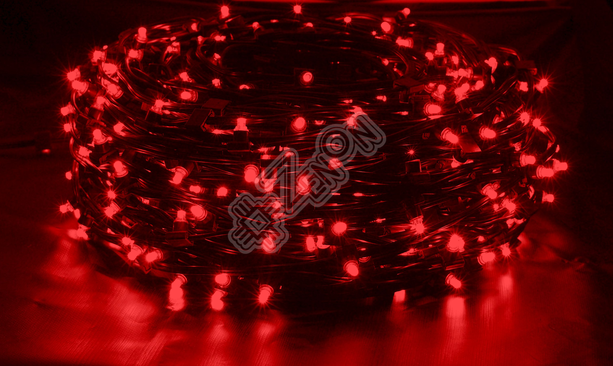 Основной провод. Обычно это провод на котором последовательно на расстоянии 15 или 30 мм расположены влагозащищенные лампы или светодиоды. Как правило, поставляется в бухтах по 100 м. Один конец провода подключается к источнику питания, другой нужно заизолировать.