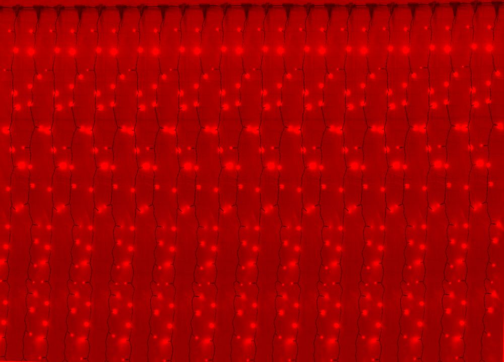 Светодиодный занавес (дождь) Infinilite 2.6 x 5.7 м, IP44, постоянного свечения, 1425 LED красного цвета, на чёрном ПВХ проводе