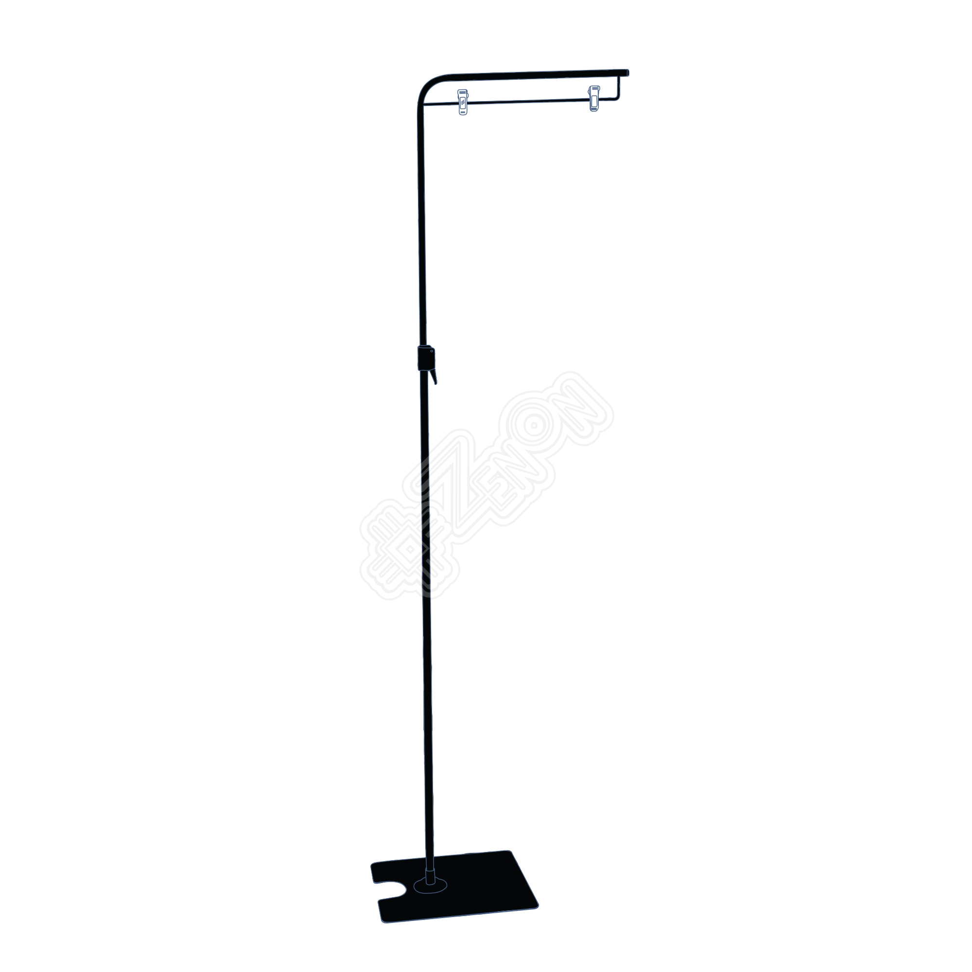 Телескопическая Г-образная стойка с металлическим основанием. Поставляется без рамки. В качестве рекламоносителя можно использовать, как же, виниловую или флаговую ткань. Планка с прищепками легко демонтируется и стойка может быть превращена в интерьерный флагшток-крыло. Высота: 1250-2400 мм. Цвет: черный.