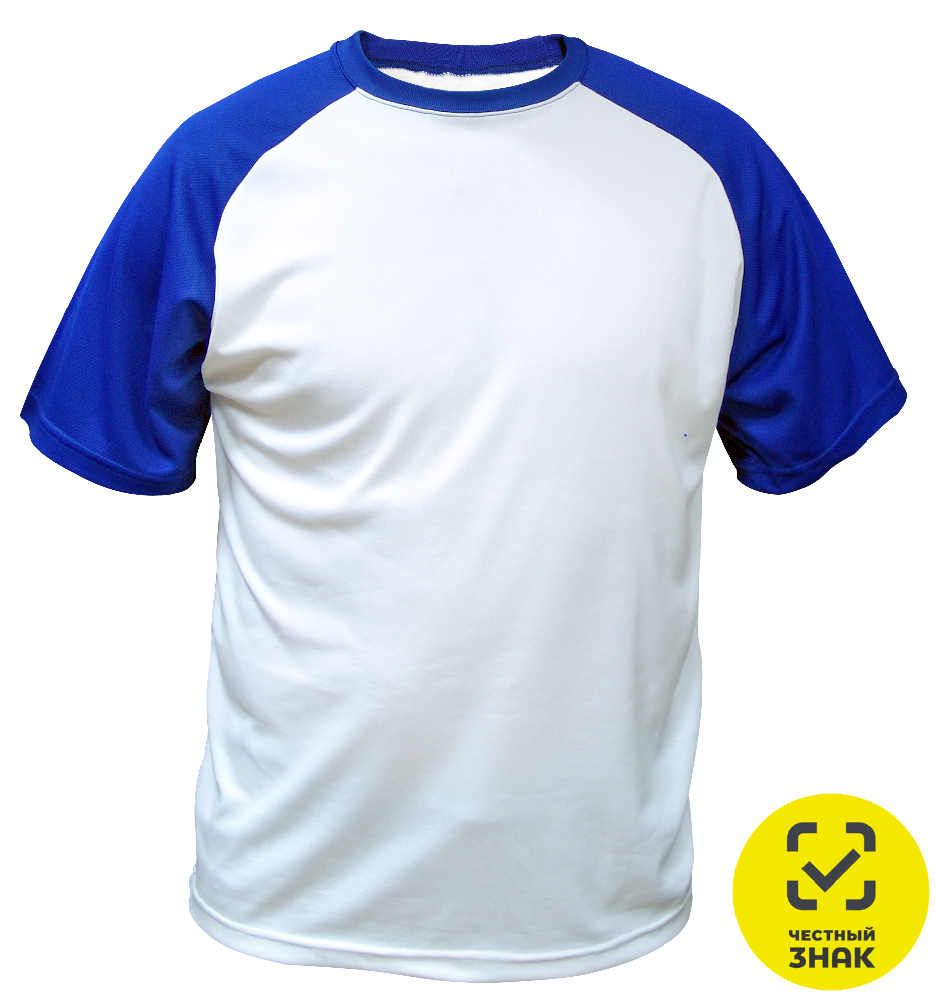 ЧЗ Футболка TEXTILLER, унисекс, белая, синие ворот и рукава,100% п/э, XXS (40)
