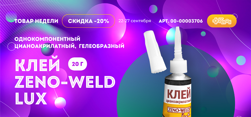 Акция для тех, кто ценит безупречное качество и надёжность! С 22 по 27 сентября 2025 года клей ZENO-WELD LUX 102 со скидкой 20%.